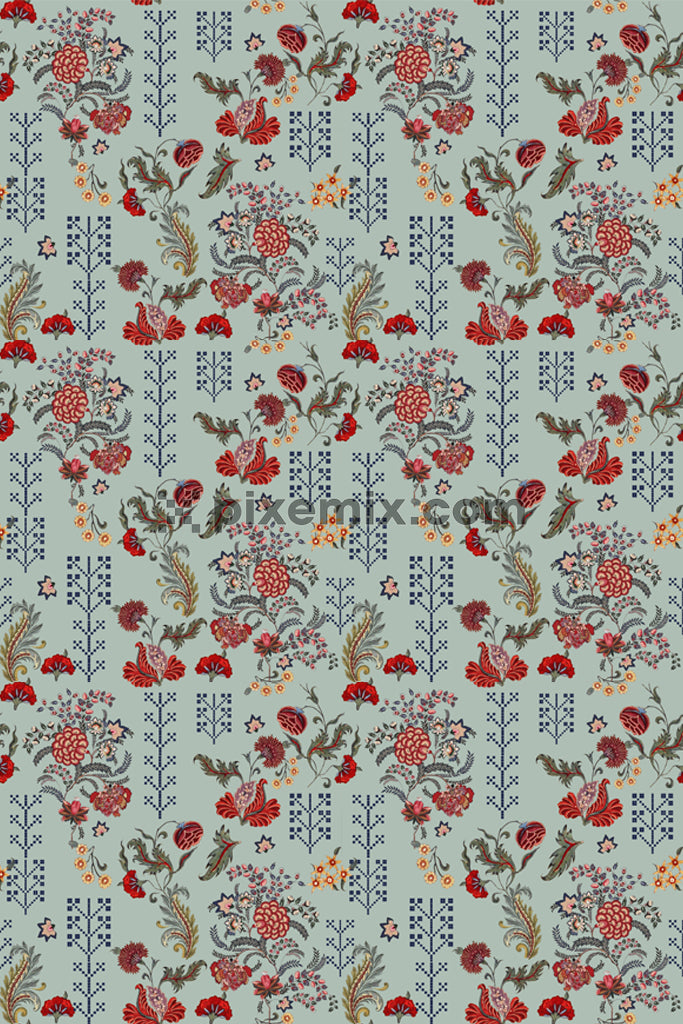 Florals and leaves product graphic with seamless repeat pattern