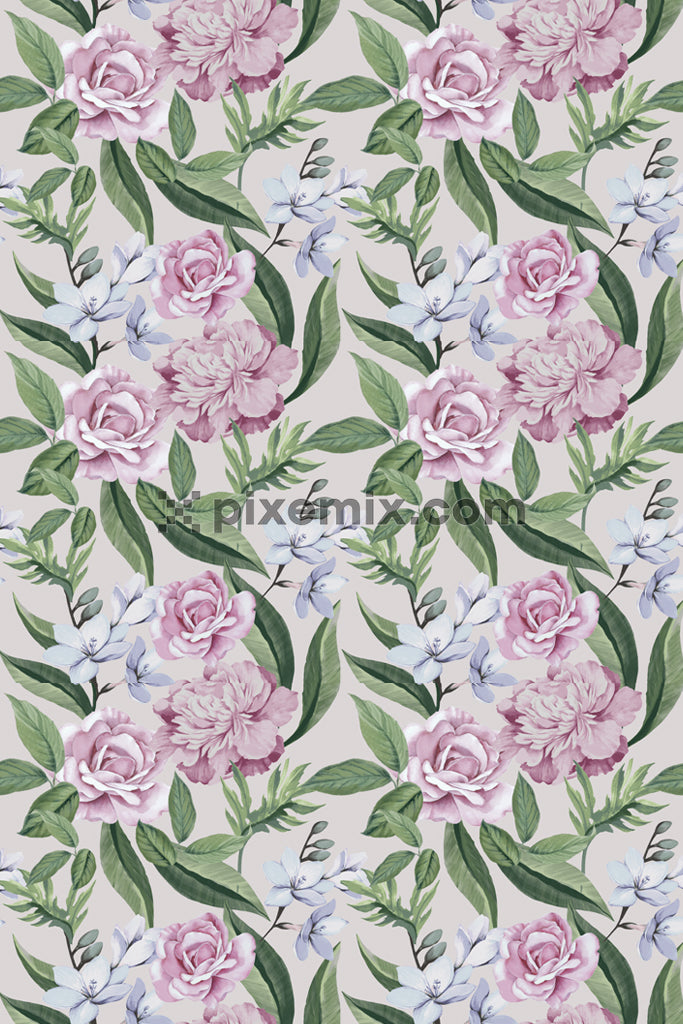 Florals and leaves product graphic with seamless repeat pattern