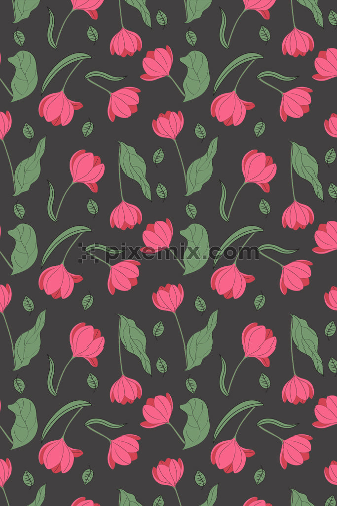 Hand illustration inspired florals and leaves product graphic with seamless repeat pattern