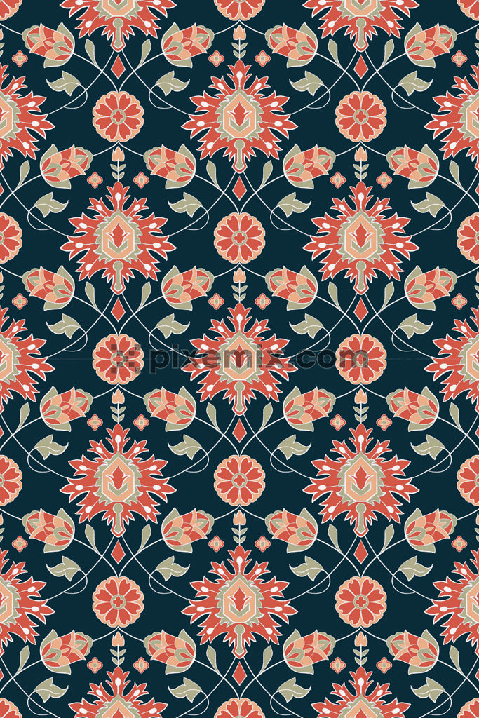 Florals and leaves product graphic with seamless repeat pattern