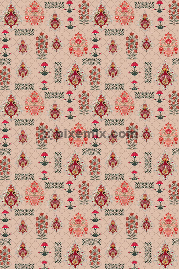 Persian art inspired floral art product graphic with seamless repeat pattern