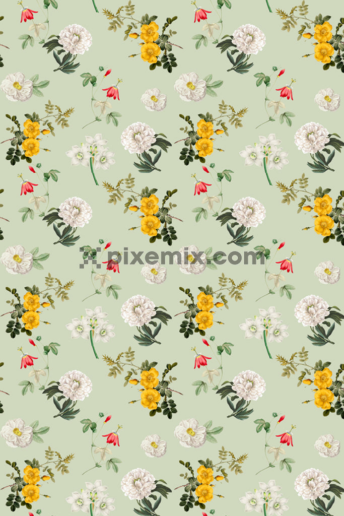 Florals and leaf product graphic with seamless repeat pattern