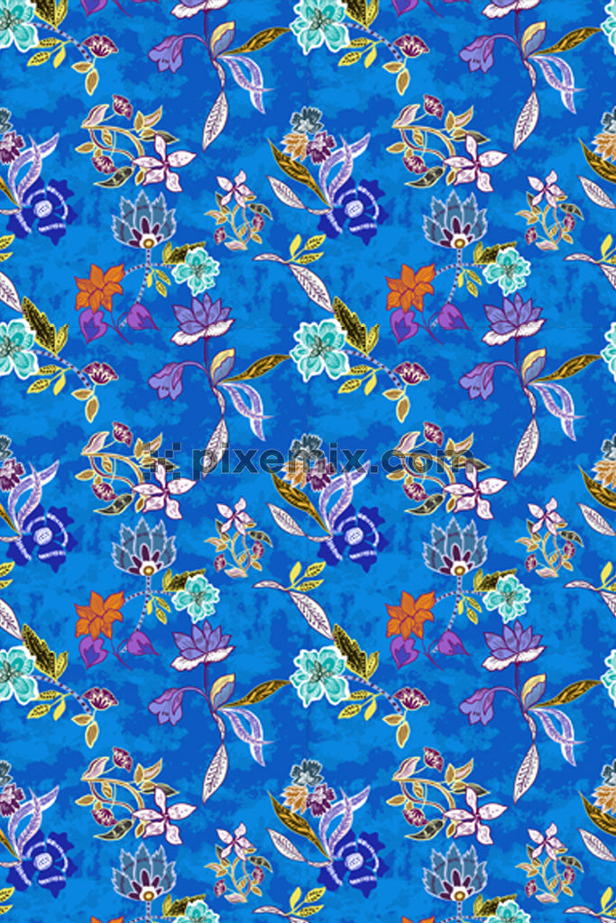 Decorative floral art & tie-dye marble effect product graphic with seamless repeat pattern