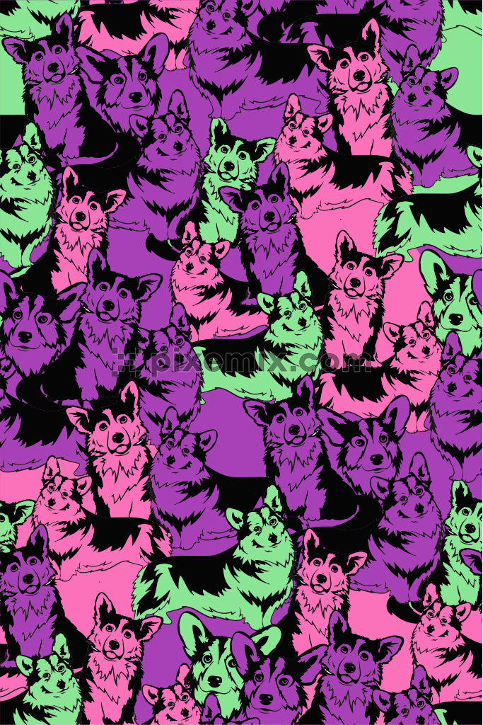 Pop art wolfs product graphic with seamless repeat pattern