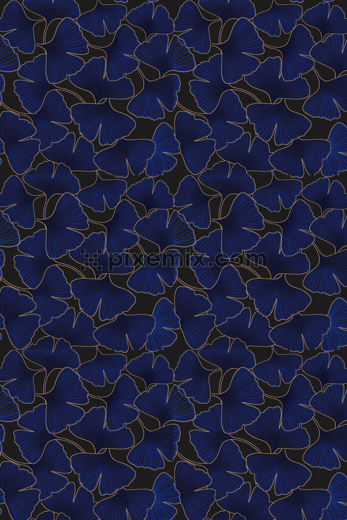 Blue ginkgo leaves and golden outline product graphic with seamless repeat pattern