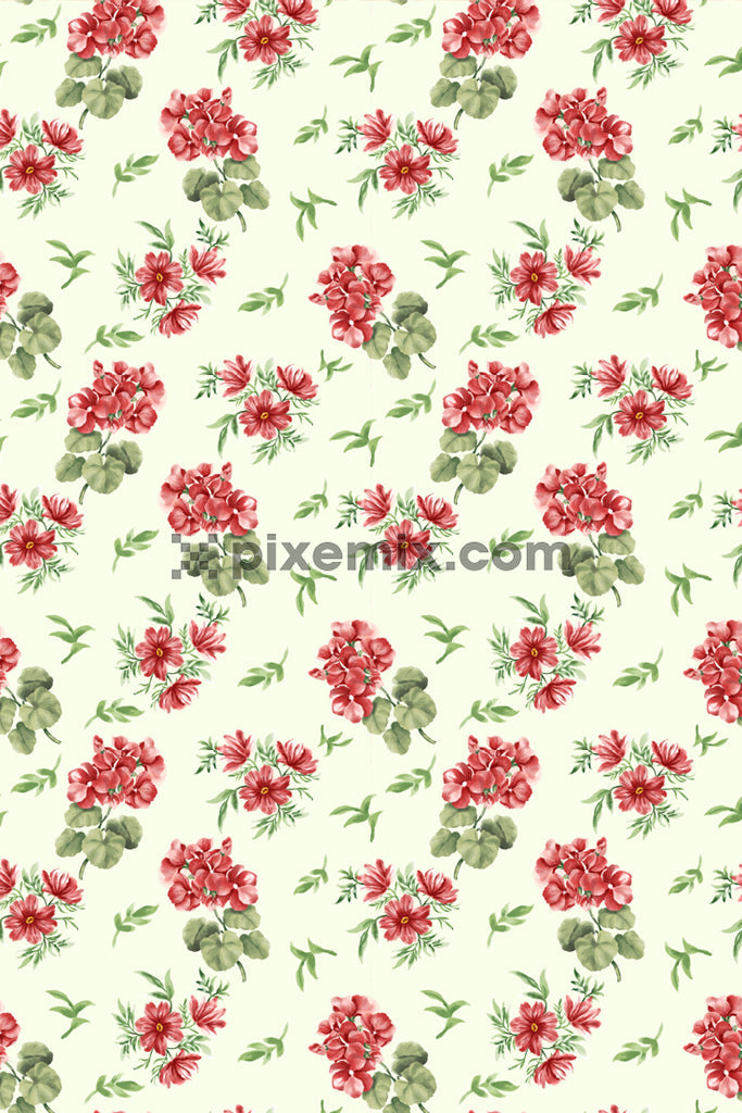 Tropical patchwork seamless repeat pattern featuring watercolor palm leaves, exotic flowers, geometric shapes, and abstract textures in vibrant colors.