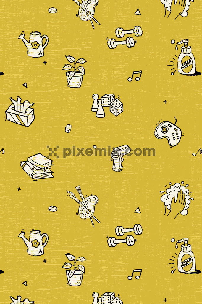 Lockdown inspired daily home activities vector product graphic seamless pattern