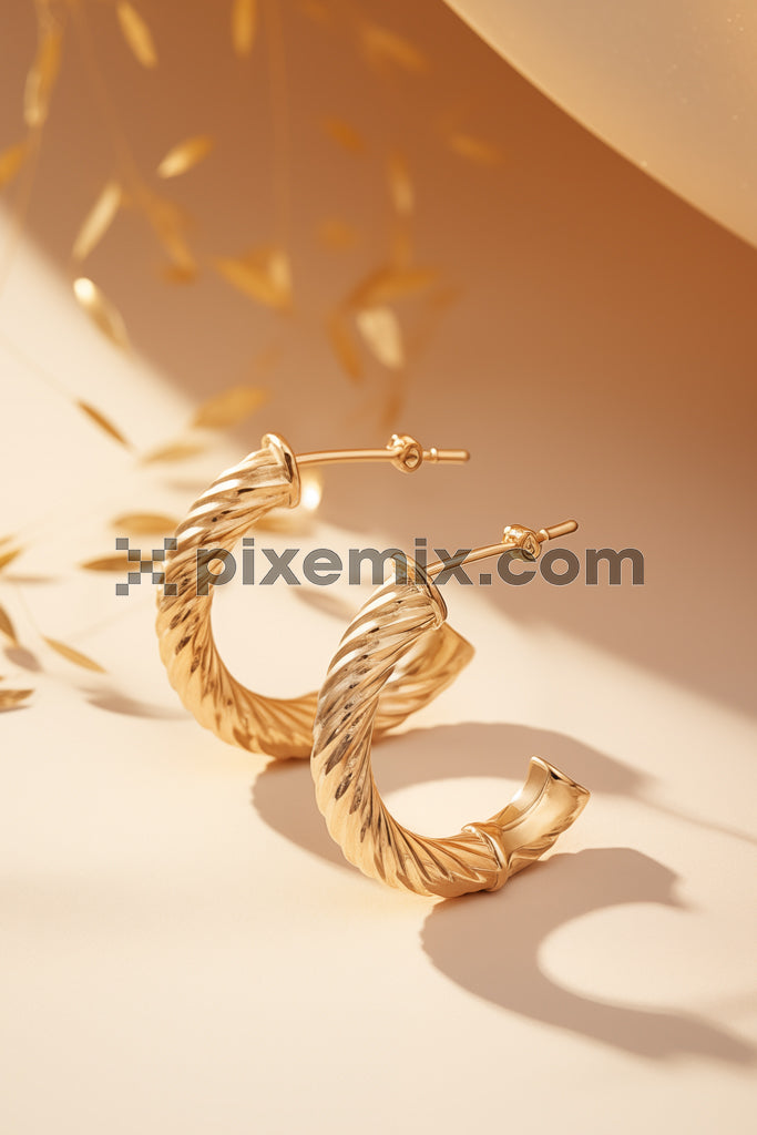 Golden twisted hoop earrings styled with soft light and warm tones for an elegant jewelry display.