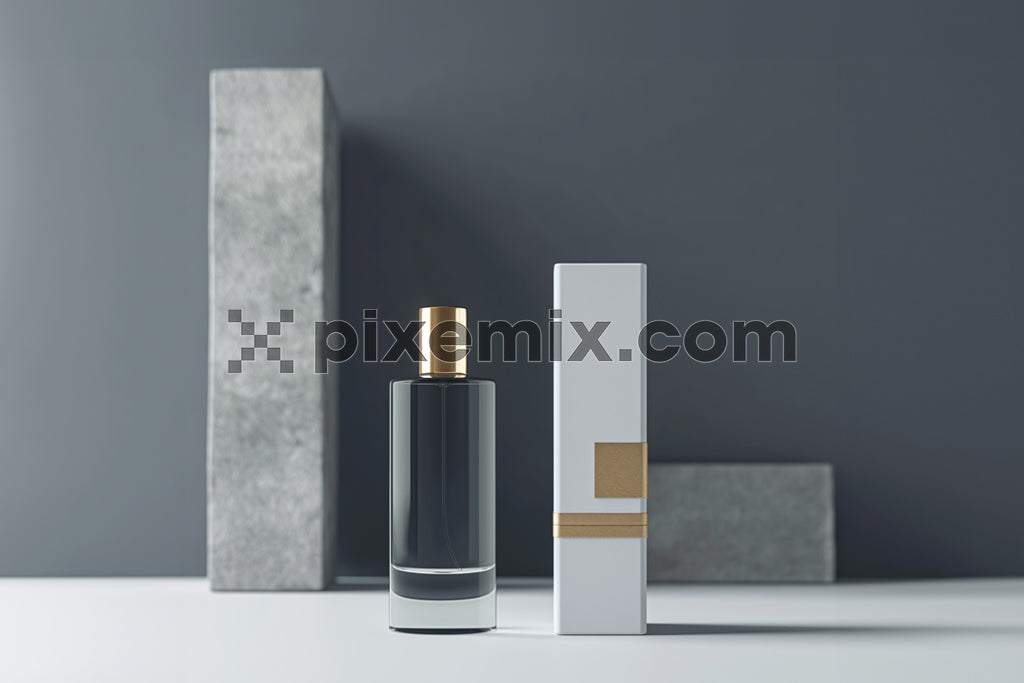 Luxury perfume bottle with elegant packaging in a minimalist stock image.