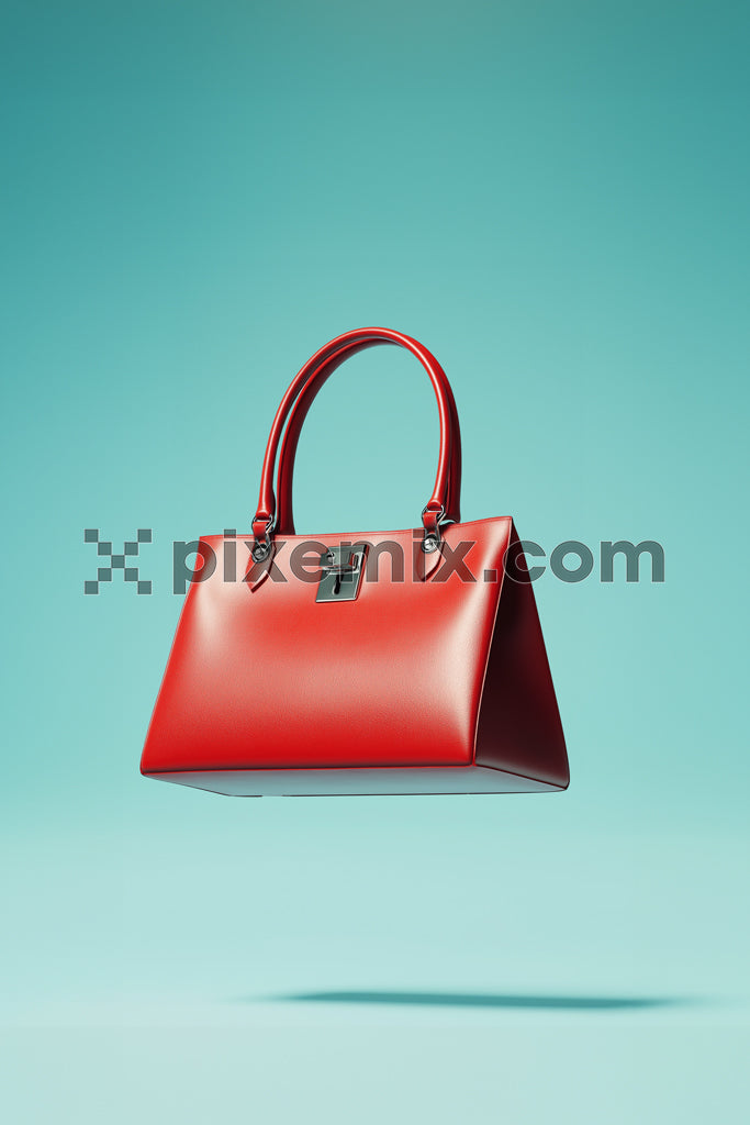 Luxury red handbag floating against a teal background in a high-fashion product stock image.