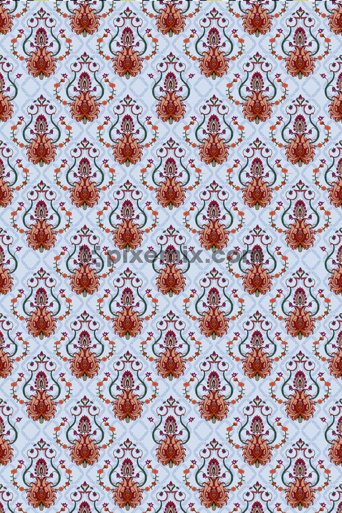 Kalamkari florals and jali product graphic with seamless repeat pattern