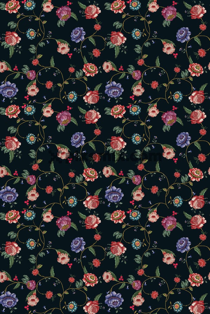 Kalamkari art inspired florals and leaves product graphic with seamless repeat pattern