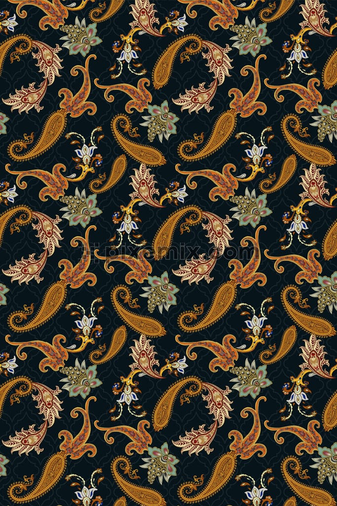 Abstract jali and paisley art product graphic with seamless repeat pattern