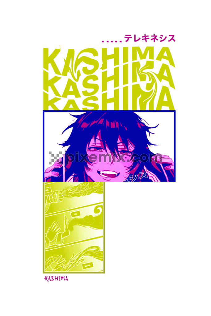 Japanese manga inspried boy and typography product graphics