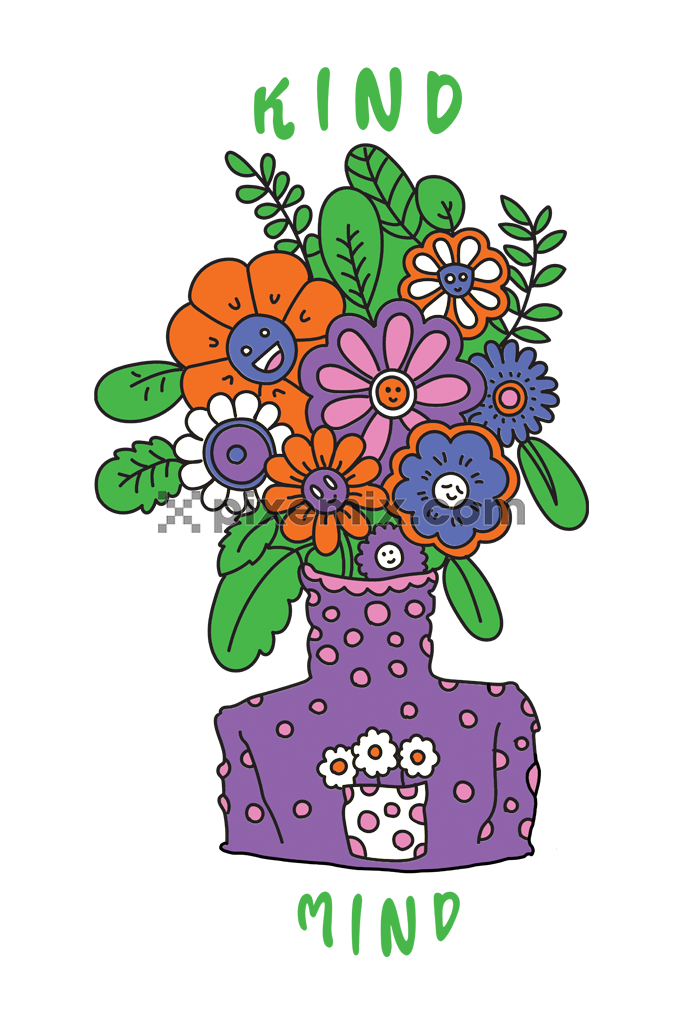 Doodle art inspired cartoon florals product graphic