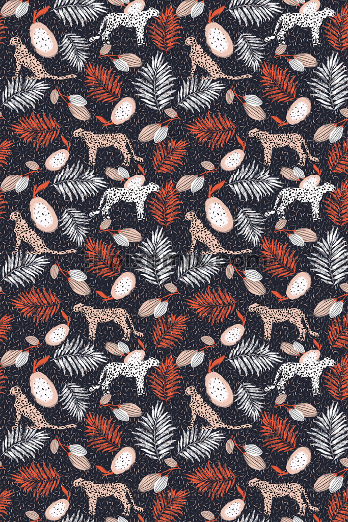 Cheetah and leopard around exotic tropical leaves product graphic with seamless repeat pattern