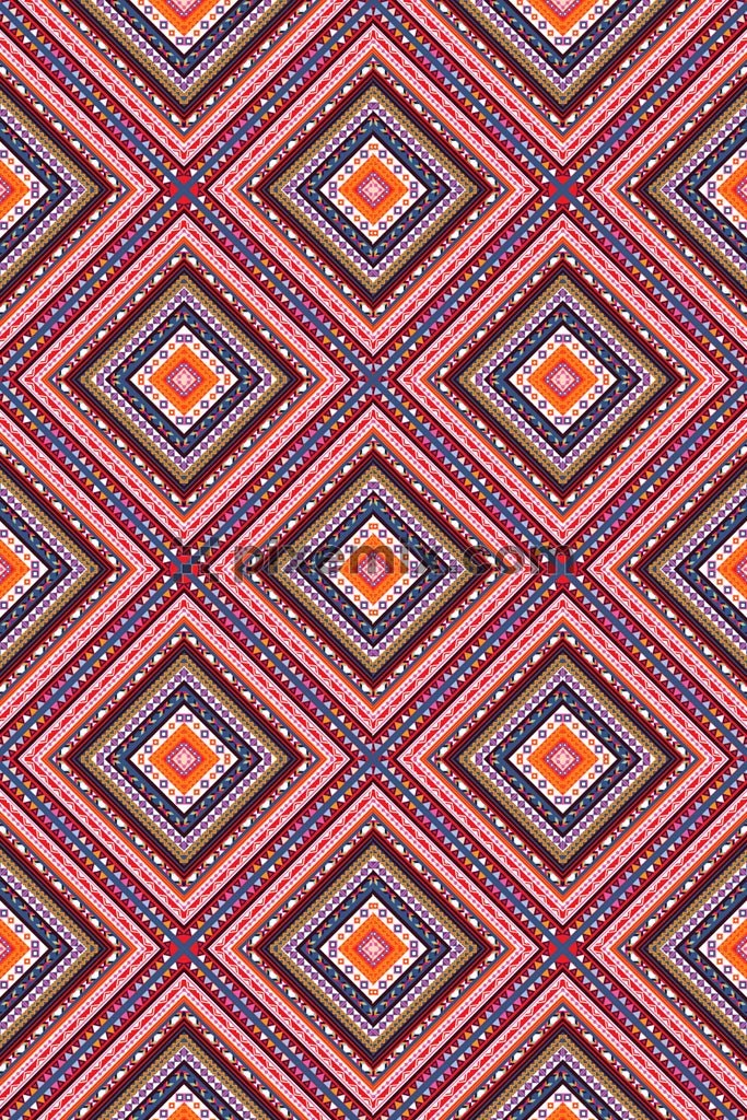 Multicolored ethnic diamond shape art product graphic with seamless repeat pattern