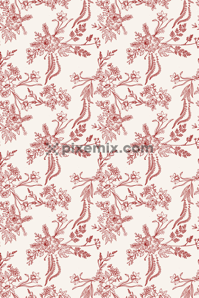 Lineart florals and leaves product graphic with seamless repeat pattern