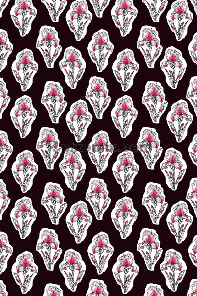 Lineart florals and abstract shape product graphic with seamless repeat pattern