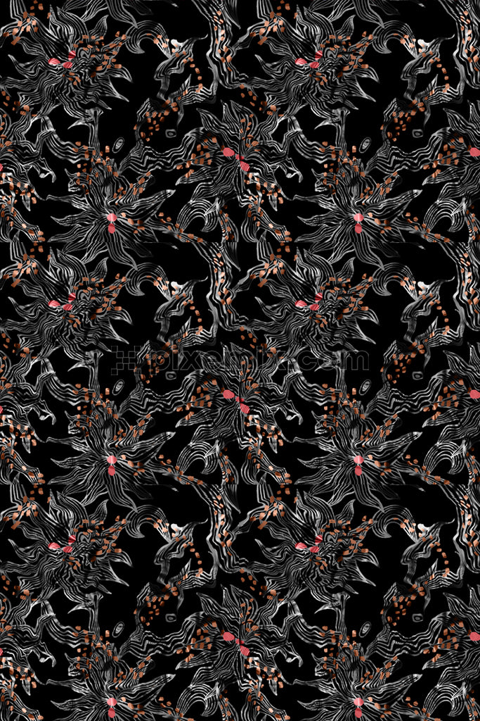 Abstract liquify floral art product graphic with seamless repeat pattern
