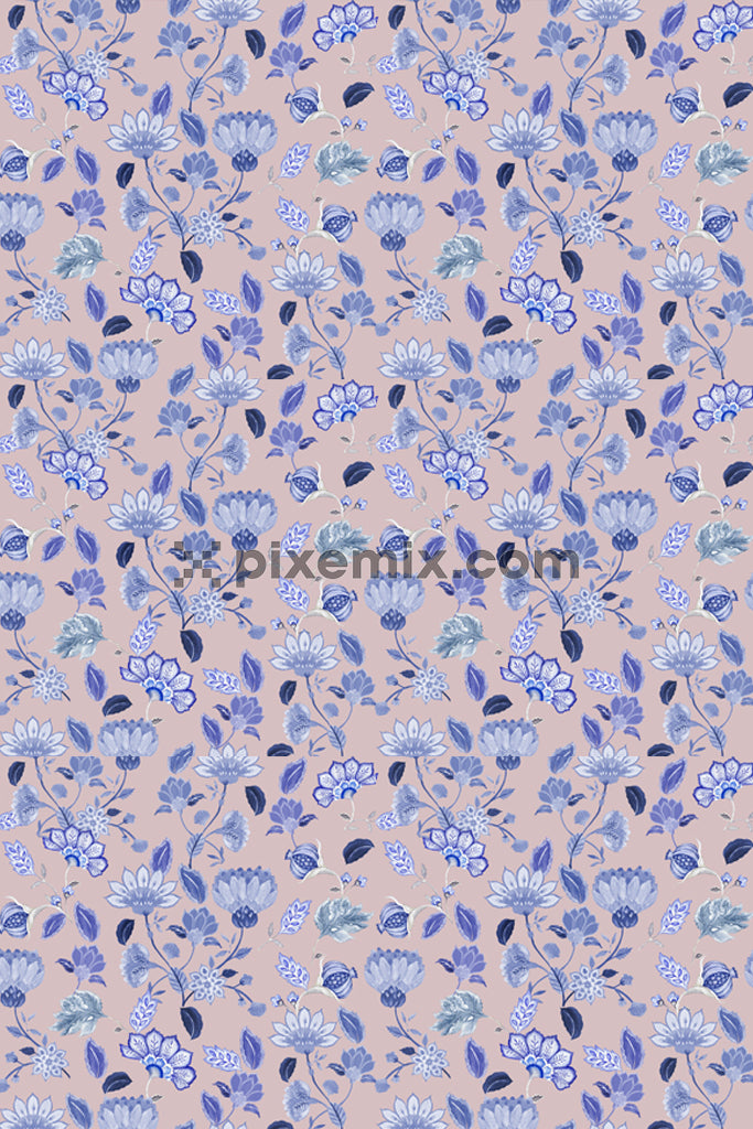 Monochrome florals and leaves product graphic with seamless repeat pattern