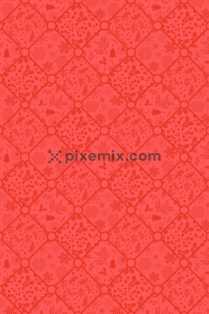 Christmas inspired monochrome leaves product graphic with seamless repeat pattern