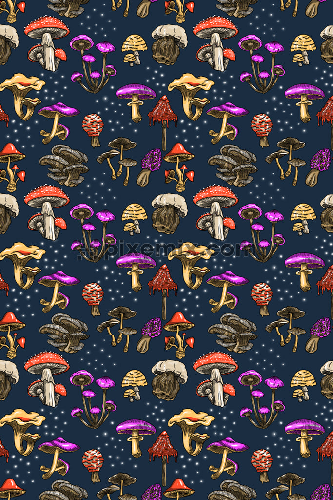 Mushroom product graphics with seamless repeat pattern