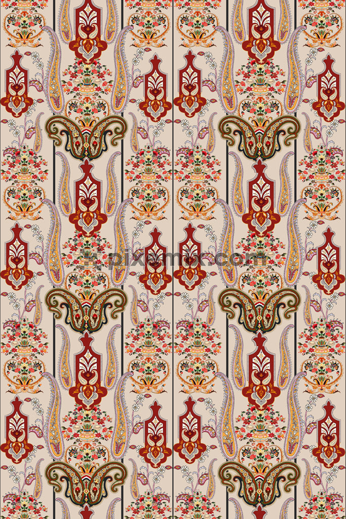 Paisley art and florals product graphic with seamless repeat pattern