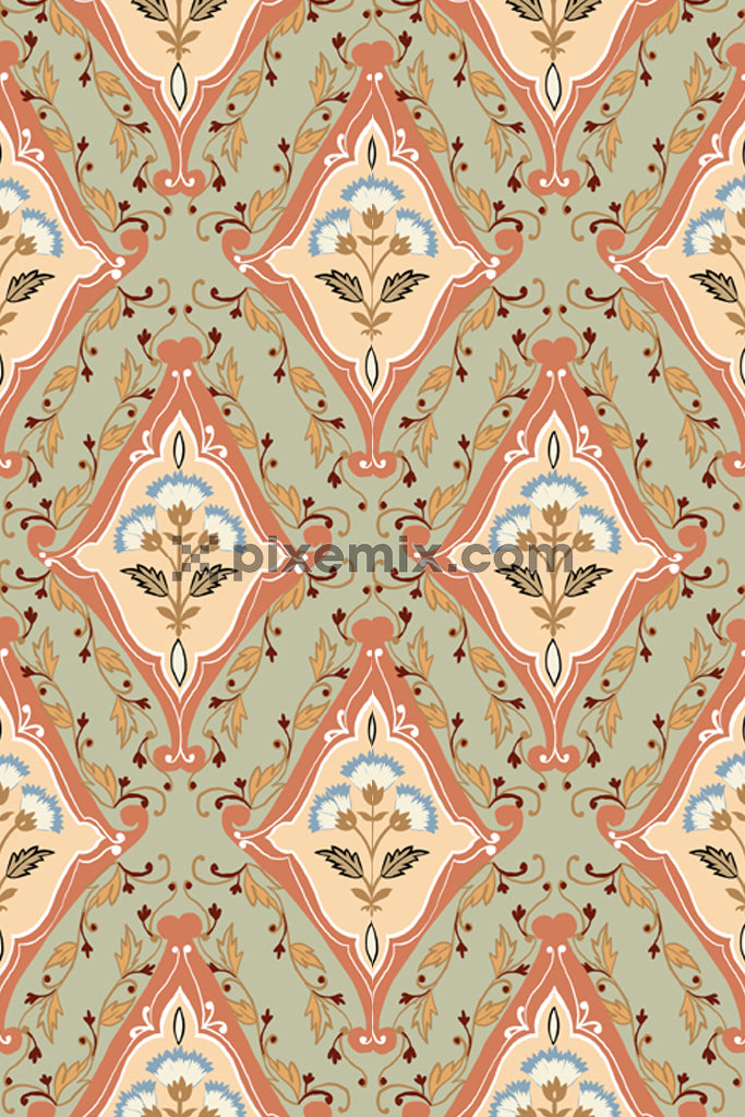 Persianart inspired paisleyart product graphic with seamless repeat pattern
