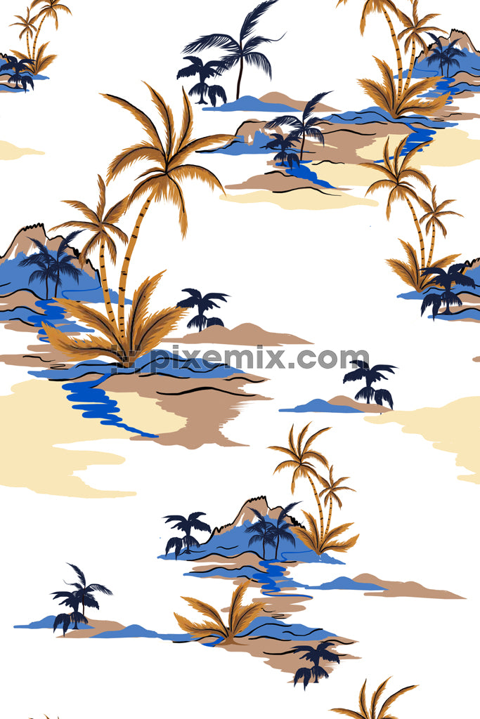 Vector palm tree landscape product graphic with seamless repeat pattern
