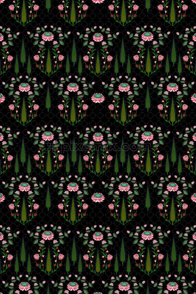 Pichwai florals and leaves product grap[hic with seamless repeat pattern