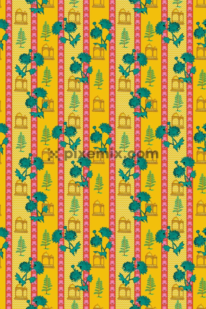 Florals stripe and mughal architecture product graphic with seamless repeat pattern