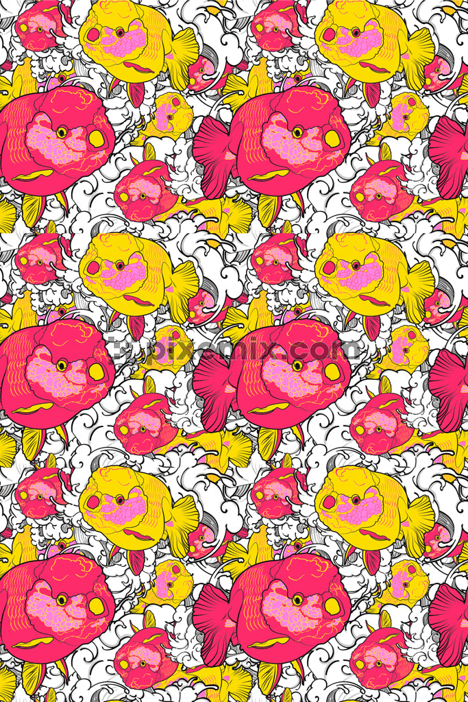 Pop art inspired cute fish vector product graphic with seamless repeat pattern
