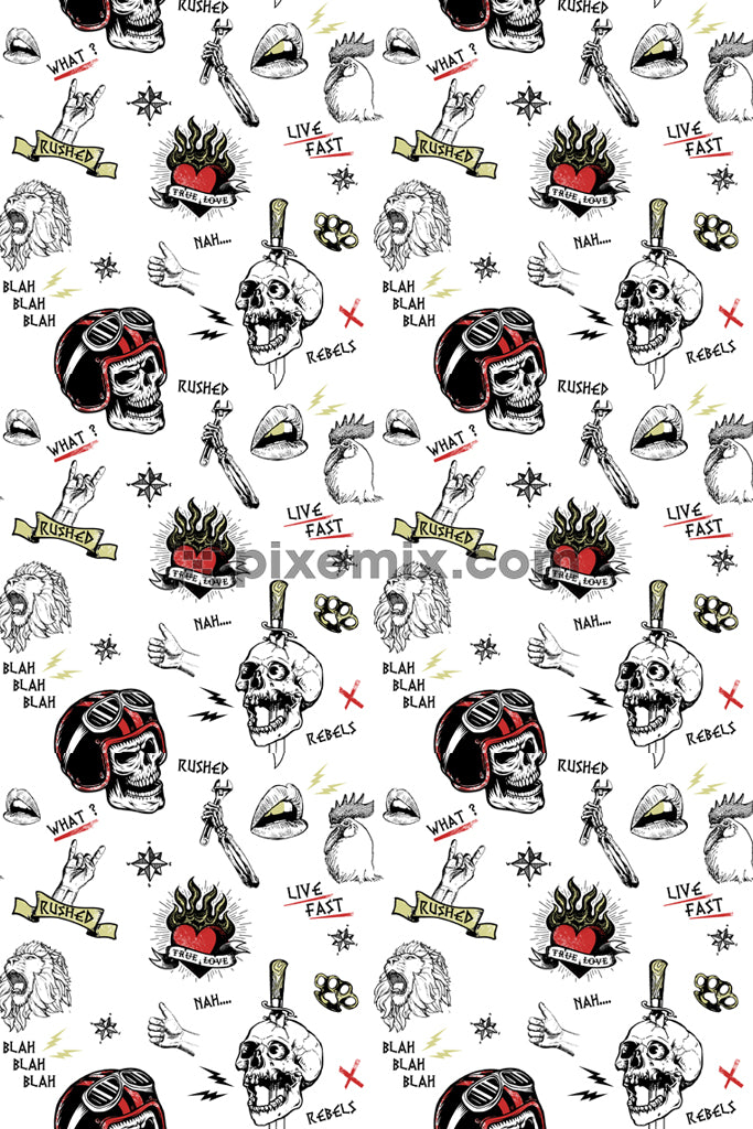 Illustration inspired punk icon product graphics with seamless repeat pattern