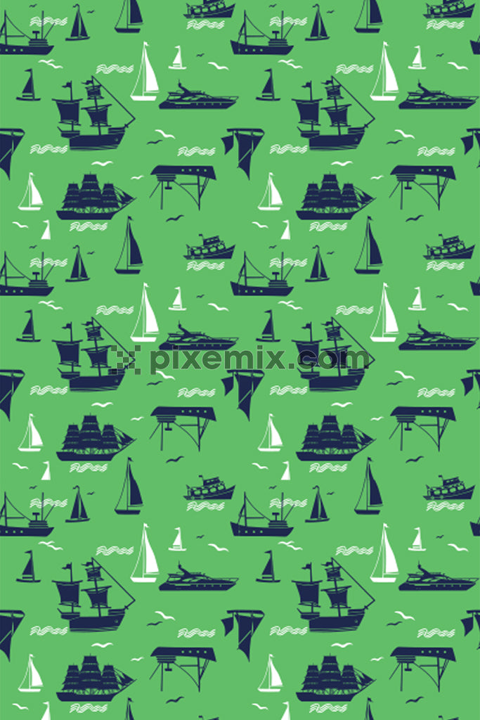 Ship and boat product graphic with seamless repeat pattern