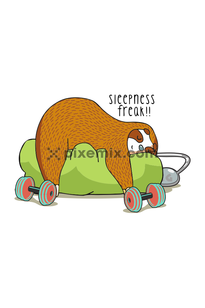 Cartoon sloth sleeping on bean bag product graphic