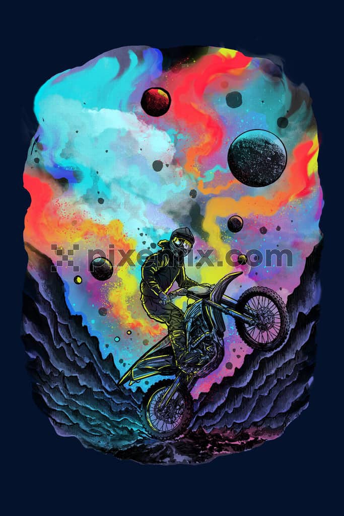 Mountain biker with splash effect product graphic