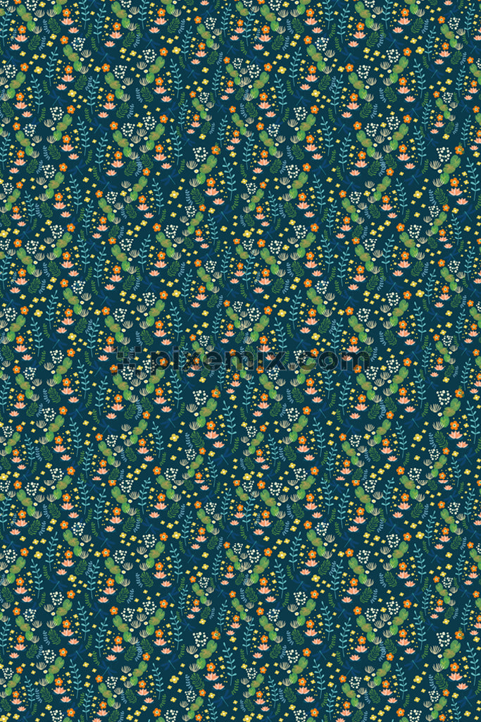 Leaf and flower product graphics with seamless repeat pattern