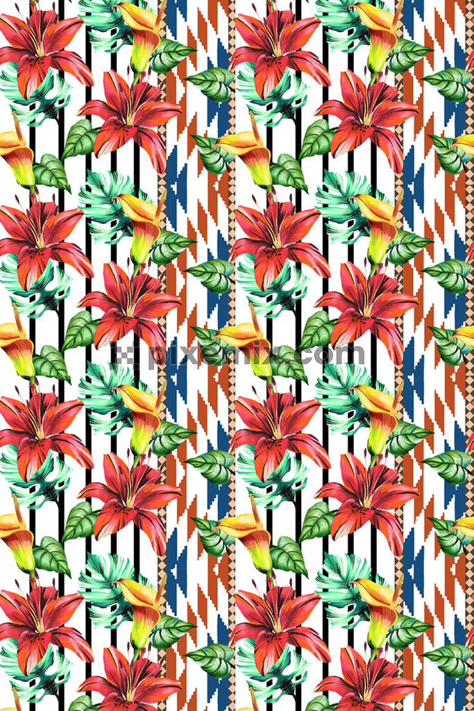 Tropical geometric digital art product graphic with seamless repeat pattern