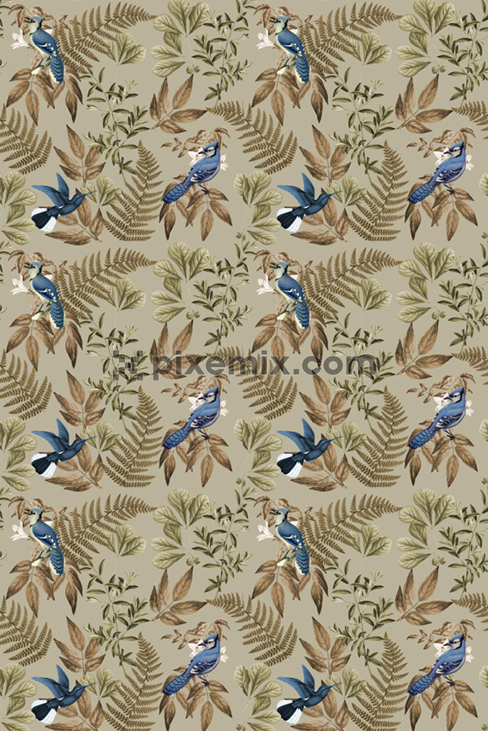 Tropical leaf and birds product graphic with seamless repeat pattern