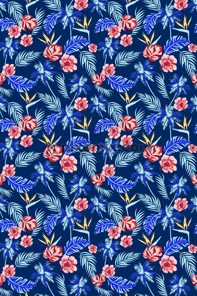 Tropical leaf and florals product graphics with seamless repeat pattern