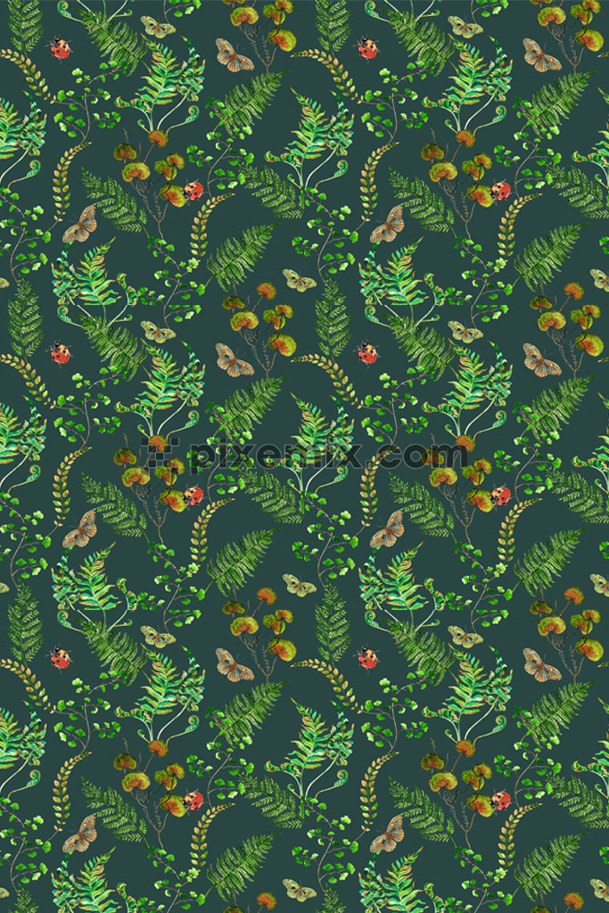 Tropical leaves and butterfly product graphic with seamless repeat pattern