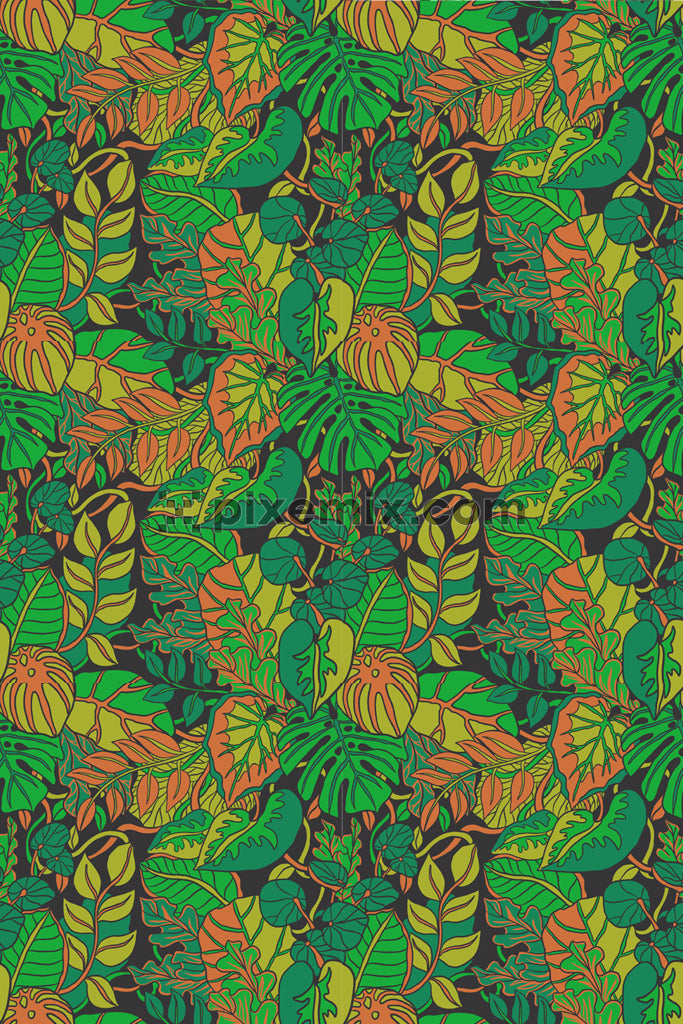 Tropical leaf product graphic with seamless repeat pattern