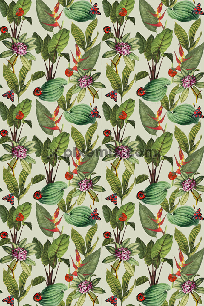 Tropical leaves and ladybirds product graphic with seamless repeat pattern