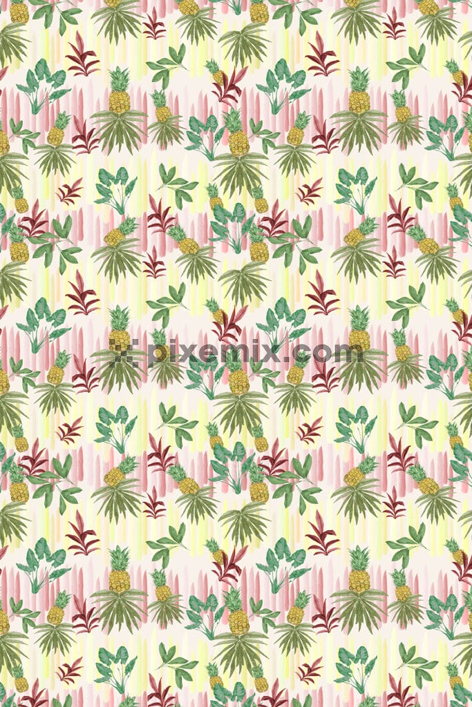 Watercolor art inspired tropical vibes product graphic with sealess repeat pattern