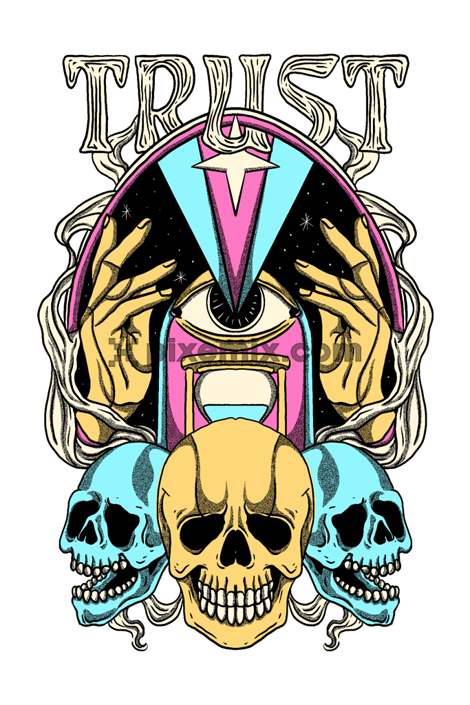 Surreal art inspired doodle skull and typography product graphic