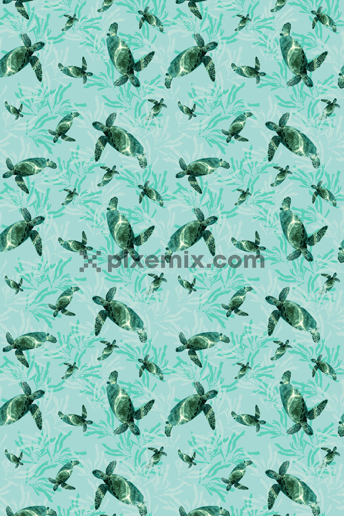 A beautiful sea turtle swimming in underwater product graphics with seamless repeat pattern