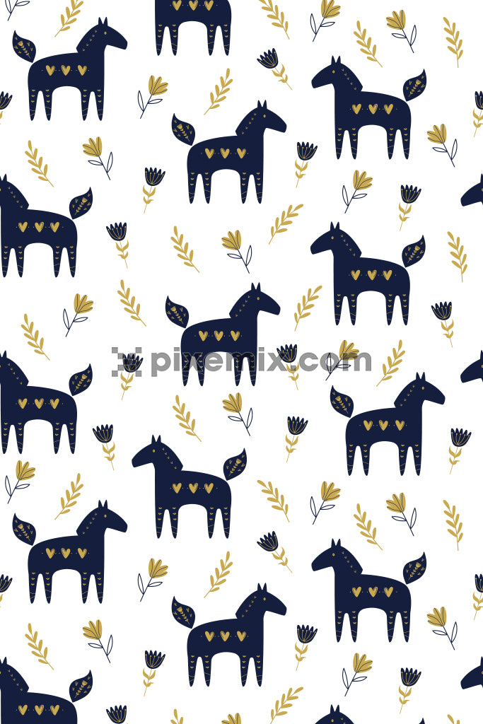 Cartoon animals and florals product graphic with seamless repeat pattern