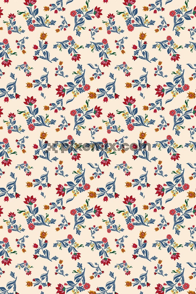 Digital florals and leaves product graphic with seamless repeat pattern