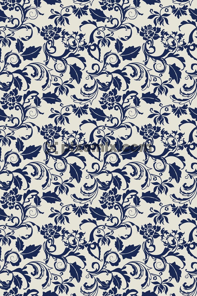 Monochrome florals and leaves and florals product graphic with seamless repeat pattern